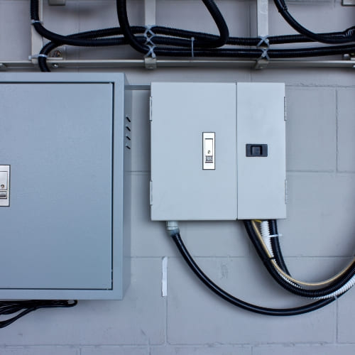 Mise en place du réseau électrique d’un hangar industriel : tirage de lignes, installation du tableau, alimentation des équipements et mise en conformité des protections.